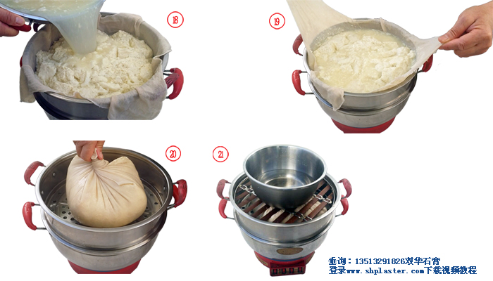 步驟11:把食品級點(diǎn)豆腐石膏粉和水迅速混合,快速攪拌成石膏漿。